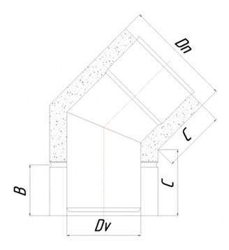Дымоходное колено 45° двустенное из нержавеющей стали в оцинковке Eco Termo 0.5мм предназначено для обустройства дымохода на улице или в помещении с пониженной температурой.
