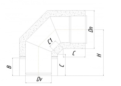 | Колено дымоходное двустенное d130/200/90 нерж/оц AISI 201 0.5 мм | 130 | 200 | 255 | 100 | 120 | 50 |
