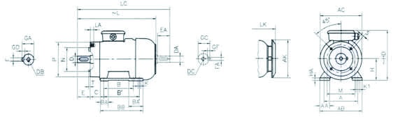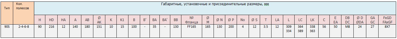 Габаритные и присоединительные размеры трехфазного электродвигателя GAMAK AGM 90S 8