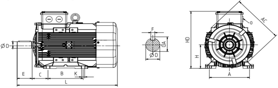 Габаритные размеры Электродвигатель WAT 18,5 кВт 1000 об/мин IE3