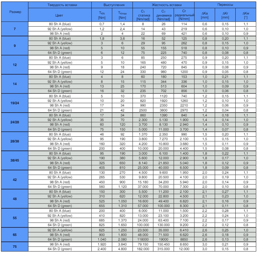 Безлюфтовые муфты состоят из следующих элементов: двух высокоточных ступиц (алюминиевых или стальных) и полиуретанового эластичного элемента (звездочки).