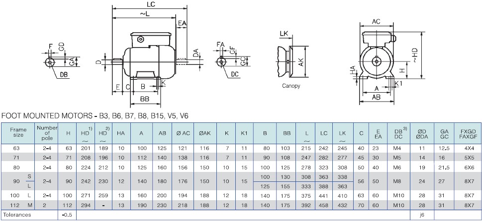 Габаритные и присоединительные размеры однофазного электродвигателя GAMAK MD 100 L 2
