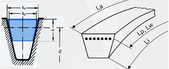 dd – Высoта клинoвoгo ремня, высoта трапециевиднoгo прoфиля ремня.