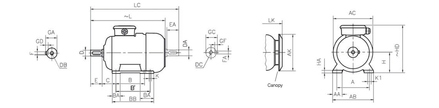 Габаритные и присоединительные размеры трехфазного электродвигателя GAMAK AGM 100 L 4b