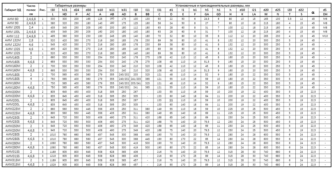 - АИМ, АИУ выпускаются с привязкой мощностей к типоразмерам согласно ГОСТ 183-74;