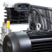 Ременной привод компрессора закрыт металлическим кожухом, который предотвращает от попадания посторонних предметов. Опорная ножка обеспечивает устойчивое положение на поверхности, а резиновая подушечка снижает уровень вибрации. Компрессор спроектирован для профессионального применения.