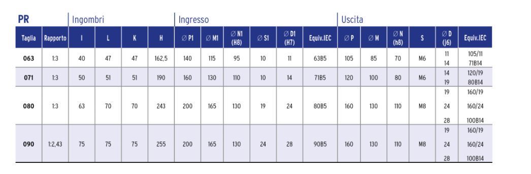 | PR080 | 75 | 18,7 | 80B4 | 0,55 | 280 | 0,9 | 73 |