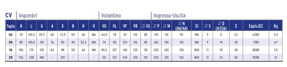 | CV 10 | 2 | 0,18-0,22 | 4 | 230 / 400 | 50 | B5 |