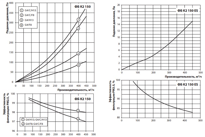 Аэродинамические характеристики фильтра ВЕНТС ФБ К2 150
