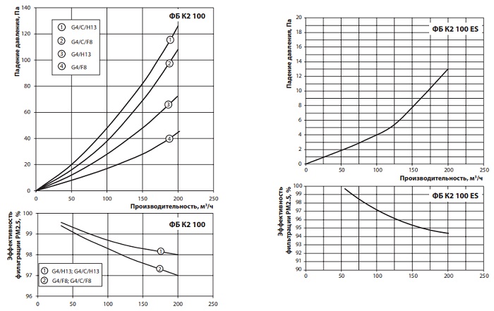 Аэродинамические характеристики фильтра ВЕНТС ФБ К2 100