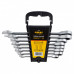 Набор ключей рожково-накидных трещоточных 8шт (8, 10, 12 ,13, 14, 15, 17, 19мм) CrV satine Sigma (6010521) - используется для работы с болтовыми соединениями (для откручивания или закручивания гаек и болтов). Рожковый ключ обеспечивает больший рабочий диапазон в труднодоступных местах. Накидной ключ охватывает крепёжную деталь со всех сторон и повторяя её профиль, позволяет мастеру прилагать усилие, не опасаясь срыва инструмента, снижая риск деформации или повреждения гайки. Использовать его возможно при наличии свободного доступа к гайкам. Двенадцатигранная накидная часть оснащена трещоточным механизмом на 72 зуба и обеспечивает мягкий и плавный ход (позволяет поворачивать ключ с шагом в 5° при работе). Изготовлен из высококачественной хромованадиевой стали, обеспечивающей долгий срок службы ключа.