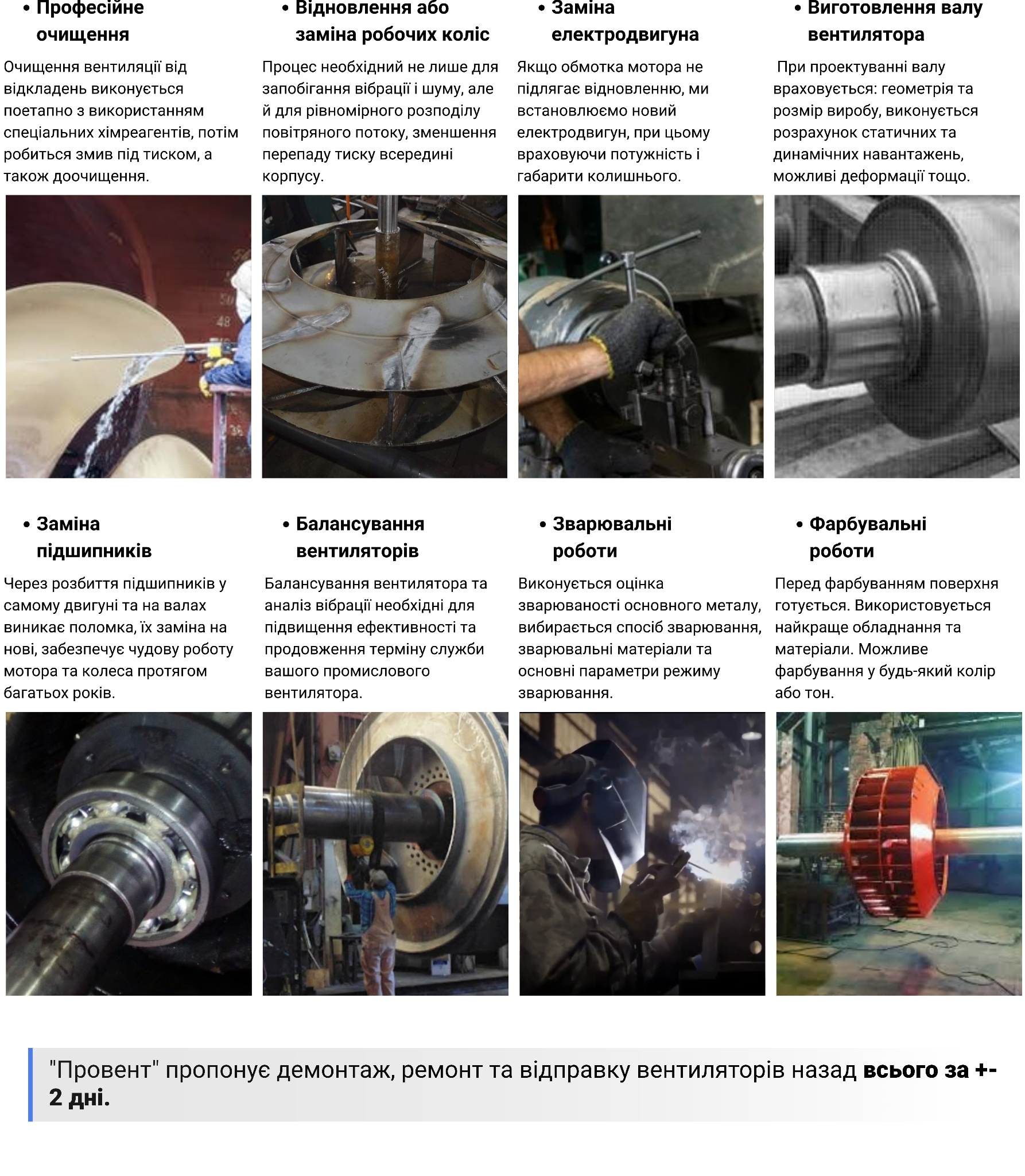 ремонту та відновлення промислових вентиляторів, в обумовлений термін.