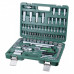 Комплектация биты; адаптер для бит; насадки 1/2; насадки 1/4; вороток отверточный; свечные насадки 1/2; рукоятка с храповым механизмом и реверсом; ключи шестигранные; удлинители 1/4; шарнир карданный; вороток Т-образный; удлинители 1/2; адаптер 1/2-3/8 с отверстием для воротка; насадки удлиненные 1/2; насадки удлиненные 1/4; удлинитель гибкий