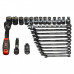 Комплектация насадки 1/2; удлинитель 1/2; комбинированные ключи; рукоятка с храповым механизмом и реверсом; шарнир карданный; вороток Т-образный