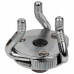 Конструкция съемника состоит из двух пластин – это и есть его корпус, между которыми смонтированы три захвата (“лапы”) с зажимным механизмом на которых нанесены насечки, препятствующие проскальзыванию по поверхности фильтра.. Элементы зажимного механизма расположены между поворотными элементами посередине корпуса.