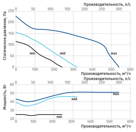 Аэродинамические характеристики Канальный вентилятор Blauberg inWave 150/160