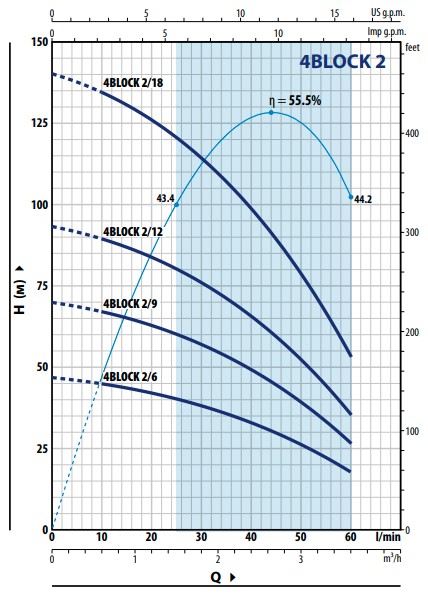 Аэродинамические характеристики Скважинный насос Pedrollo 4BLOCKm 2/18