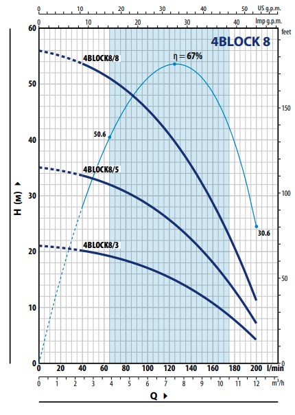 Аэродинамические характеристики Скважинный насос Pedrollo 4BLOCKm 8/3