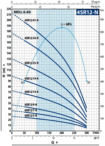 Аэродинамические характеристики Скважинный насос Pedrollo 4SR 12/5 N-PD
