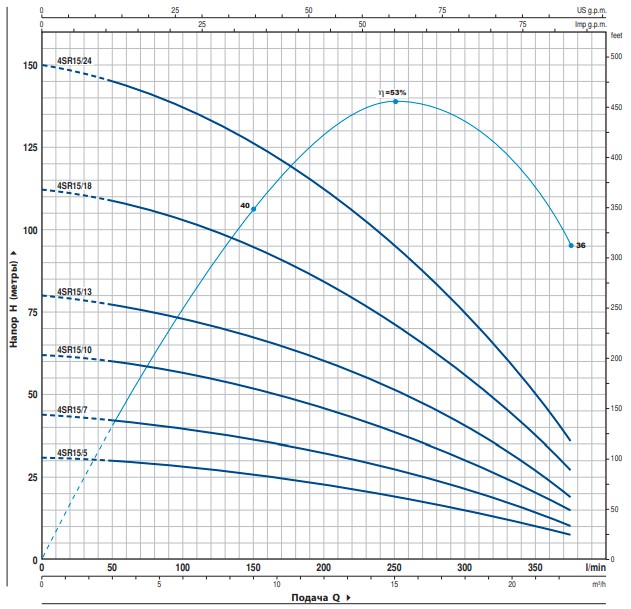 Аэродинамические характеристики Скважинный насос Pedrollo 4SR 15/13-PD