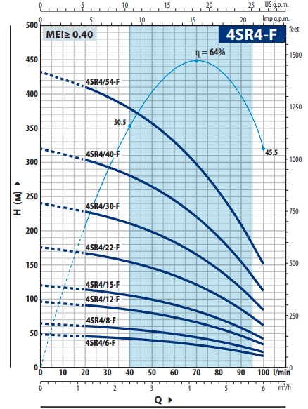 Аэродинамические характеристики Скважинный насос Pedrollo 4SR4/40 F-PD