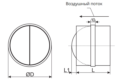 Обратный клапан - срабатывает автоматически и защищает от: обратных потоков воздуха, сквозняков, механических загрязнений, проникновения насекомых в воздуховод и помещение.