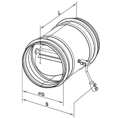 Клапан предназначен для подключения к круглым воздуховодам вентиляционных систем с помощью хомутов.