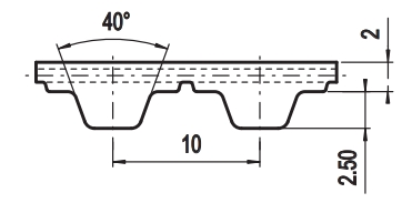 Габаритные размеры Зубчатый ремень T10/50 сталь корд м.п.