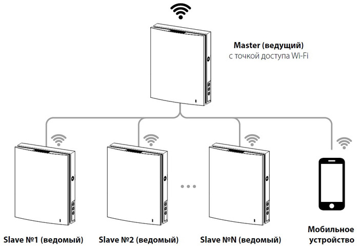 - Первая установка в цепочке становится основным управляющим устройством / установкой-задатчиком.