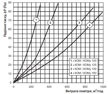 Аэродинамические характеристики Обратный клапан ВЕНТС КОМу 160