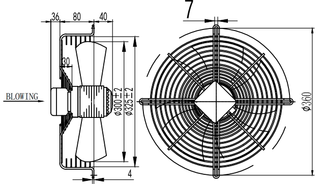 Сетка и крыльчатка вентилятора изготовлены из стали, покрытой термо-реактивным порошковым покрытием.