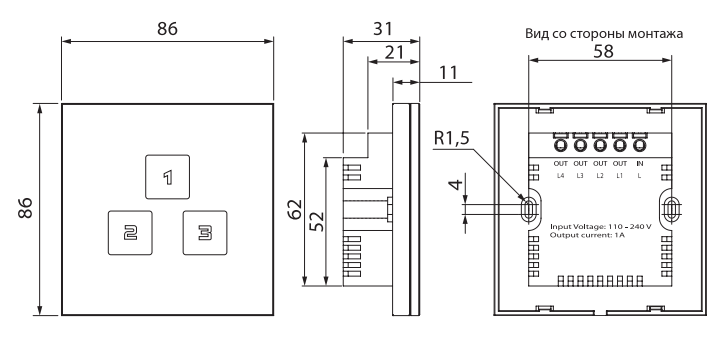 Переключатель скоростей устанавливается внутри помещений на стене в коробке для настенного монтажа МКН-5 (поставляется отдельно) или в стене в коробке скрытого монтажа МКВ-1 (входит в комплект).
