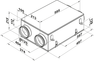 Благодаря минимальной высоте корпуса установка монтируется внутри помещений за подвесными потолками в горизонтальном положении и присоединяется к воздуховодам диаметром 125 мм.
