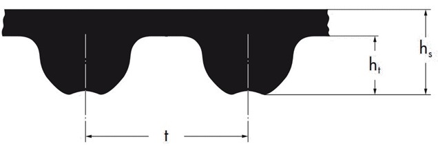 Поверхность зубьев ремня покрыта слоем ткани или полиуретана. В центре изделия расположен несущий элемент – корда. Корда представляет собой армированные волокна и в зависимости от эксплуатационной среды может выполняться из арамида, стали, стекловолокна. Маркируются ремни буквенным кодом, который обозначает величину метрического шага и межцентровое расстояние между зубьями (в мм).