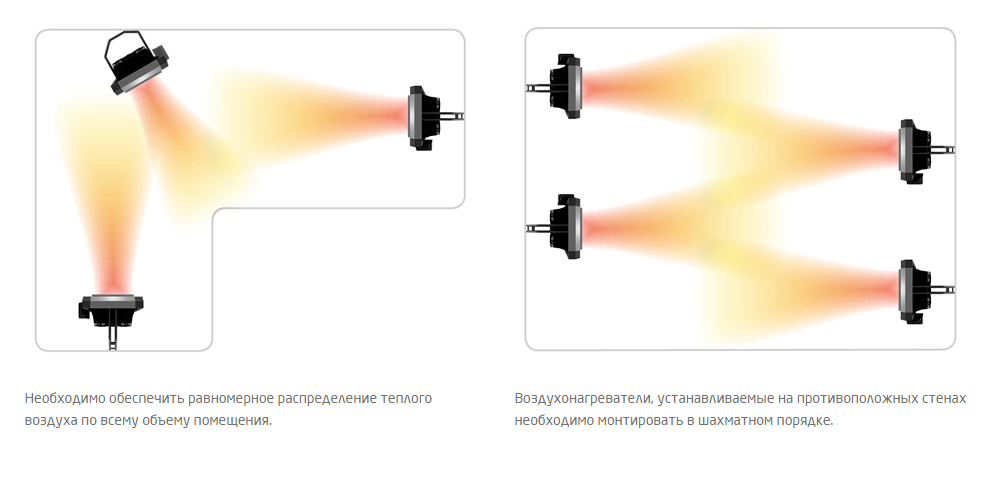 Электрический воздухонагреватель предназначен для монтажа внутри помещений.