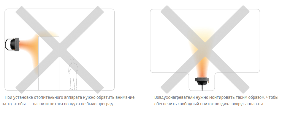 Нагреватели LEO FB можно установить в любой позиции как горизонтально так и вертикально к перегородкам здания под углом 30° и 45° к преграде.