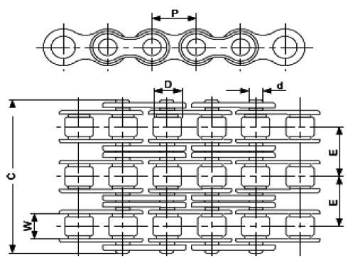 Цепь роликовая ITA 16B-3 25,4 25,4 15,88 36,1 17,02 8,28 31,88