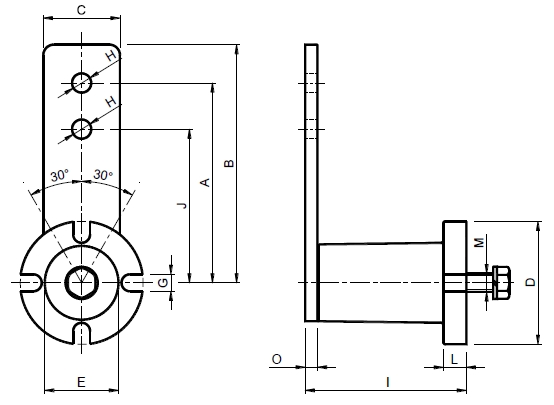 | A | B | C | ØD | ØE | G | ØH | I | J | L | M | O | Newton 0°-30° (Arm A) | Newton 0°-30° (Arm J) | |