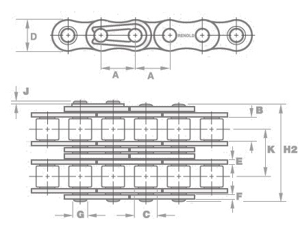 Цепь роликовая Renold 08B-2 12,7 12.700 7.75 8.51 11.70 1.55 1.55 4.45 30.4 2.0 13.92