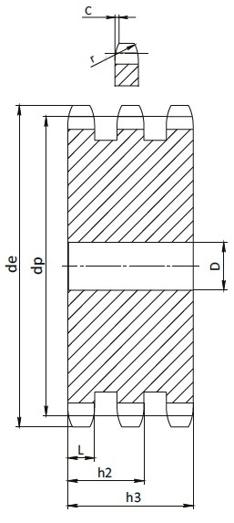 | de | dp | D | r | C | h1 | L | h2 | h3 | |