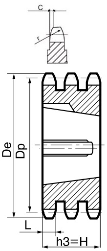 | de | dp | d | H | r | C | h1 | L | h2 | h3 | |