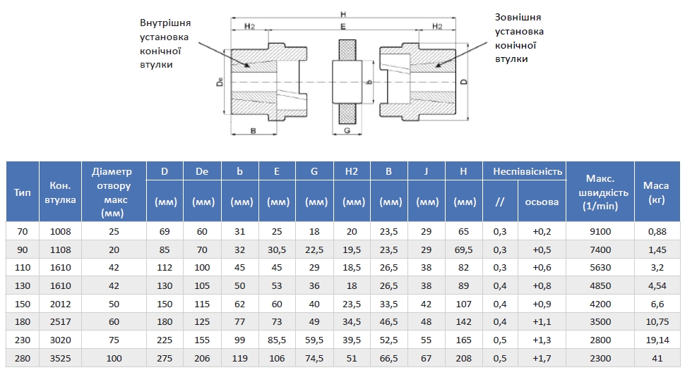 муфта виготовляється з високоякісних матеріалів, які забезпечують тривалий термін служби навіть в умовах високих навантажень та інтенсивних робочих циклів. напівмуфти виготовлені з сірого чавуну, еластичний елемент з гуми
