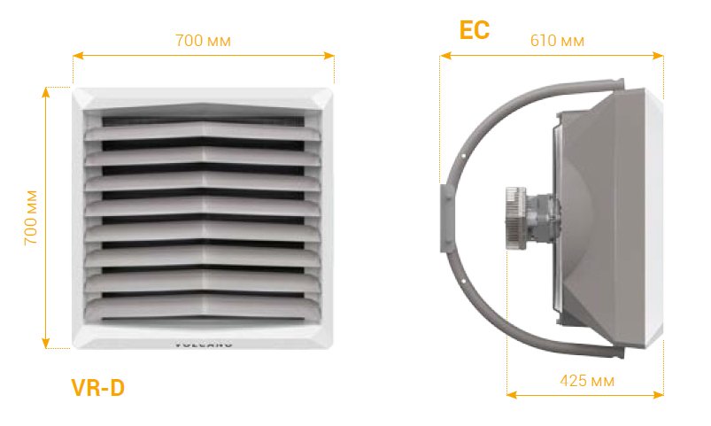 Повітряно-опалювальні агрегати Volcano - це нове покоління обладнання з водяними теплообмінниками, що сполучає в собі інноваційні технічні рішення і сучасний промисловий дизайн. Вивірена конструкція виконаного з високою точністю корпусу нагадує прекрасну і разом з тим досконалу по своїй простоті форму алмазу. Характер апарату підкреслюється композицією ретельно підібраних матеріалів і аеродинамічній формою воздухонаправляющего жалюзі.