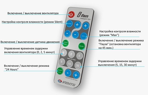 - Таймер затримки вимкнення- при спрацьовуванні датчика руху або зовнішнього вимикача вентилятор працює 5, 15 або 30 хвилин, а потім повертається до попереднього режиму роботи.