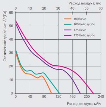Аеродинамічні характеристики осьового вентилятора ВЕНТС 100 Бейс