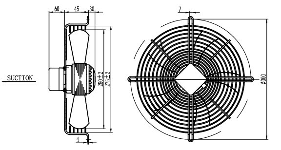 Габаритні розміри Осьовий вентилятор MAER 2E-250-S