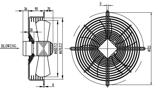 Габаритні розміри Осьовий вентилятор MAER 4D-450-B