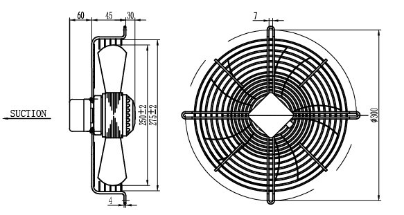 Габаритні розміри Осьовий вентилятор MAER 4E-250-S