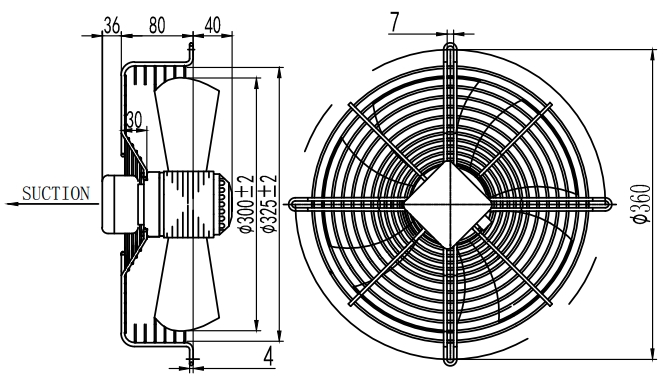 Габаритні розміри Осьовий вентилятор MAER 4E-300-S