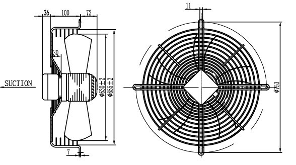 Габаритні розміри Осьовий вентилятор MAER 4E-550-S